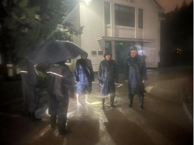 本网讯 近日,台风“梅花”在浙江舟山普陀沿海登陆,登陆时强度为强台风级,上海中心气象台于21时48分更新暴雨黄色预警信号为暴雨橙色预警信号,市防汛指挥部启动全市防汛防台Ⅱ级响应行动。为做好学校防御台风“梅花”的各项工作,排查风险隐患,14日晚间,校党委书记李崟、副院长王陈、后勤处处长徐烈带队深入校园防汛防台一线,指挥防汛防台工作,并慰问在校进行防汛工作的教职员工。