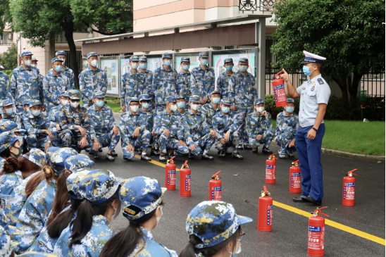 在演练前,杨浦区消防救援中心翔殷支队教导员杨警官在学生活动中心一楼小剧场为2022级部分军训学生进行了火灾燃烧的常识、灭火器材类型、灭火基本方法和火场逃生方法等消防安全知识宣讲。宣讲内容丰富实用,宣讲过程生动有趣,极大提高了同学们的消防安全意识,同时一个个火灾事故现场的视频和图片给人留下了深刻印象,让我们深切体会到火灾造成的严重后果,给我们敲响了警钟,从而让我们更加重视火灾防范和消防安全知识的普及。
