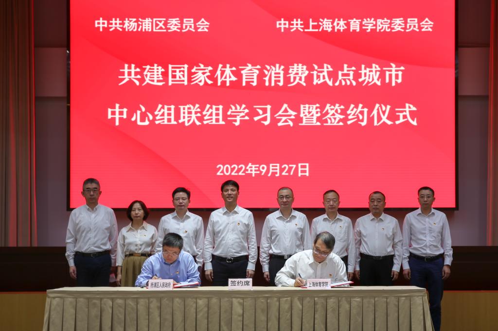 本网讯 今天(9月27日)上午,杨浦区委和上海体育学院党委关于共建国家体育消费试点城市中心组联组学习会暨签约仪式举行。杨浦区委书记谢坚钢、上海体育学院党委书记李崟出席会议并讲话。杨浦区委副书记、区长薛侃,副区长施方、王浩,上海体育学院党委副书记、院长陈佩杰,党委副书记潘勤,党委副书记、副院长王继红,副院长唐炎参加。会议由杨浦区委常委、宣传部部长卢刚主持。