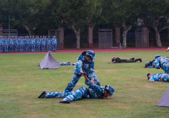 本次军训采取线上线下相结合的方式,以强化学生思想政治教育为根本目的,以全面提升学生综合素质为目标,开展相关工作。线上教学主要以国防教育与军事理论、党史学习、急救知识学习为主,开展了以连为单位的内务展示评比,红歌教唱与观看红色电影等爱国主义教育活动,拓展丰富学生的军训生活。线下开展了队列训练、战术小队攻防演练以及擒敌拳技能练习、消防逃生演练等。