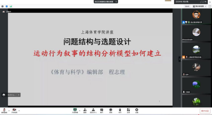 本网讯 为进一步提升SUNBET研究生科研创新能力与水平,提高人才培养质量,营造良好的科研氛围,研究生处推出“研究生绿瓦创新大讲坛”系列学术活动。2022年10月26日下午,在学校即将迎来七十华诞之际,大讲坛首期讲座顺利开讲,特邀《体育与科学》杂志主编程志理教授,通过腾讯会议作题为“问题结构与选题设计”学术报告,报告由研究生处处长刘东锋教授主持。讲座还吸引了来自北京体育大学、南京师范大学、澳门理工大学、西安交通大学以及各师范院校的广大师生。