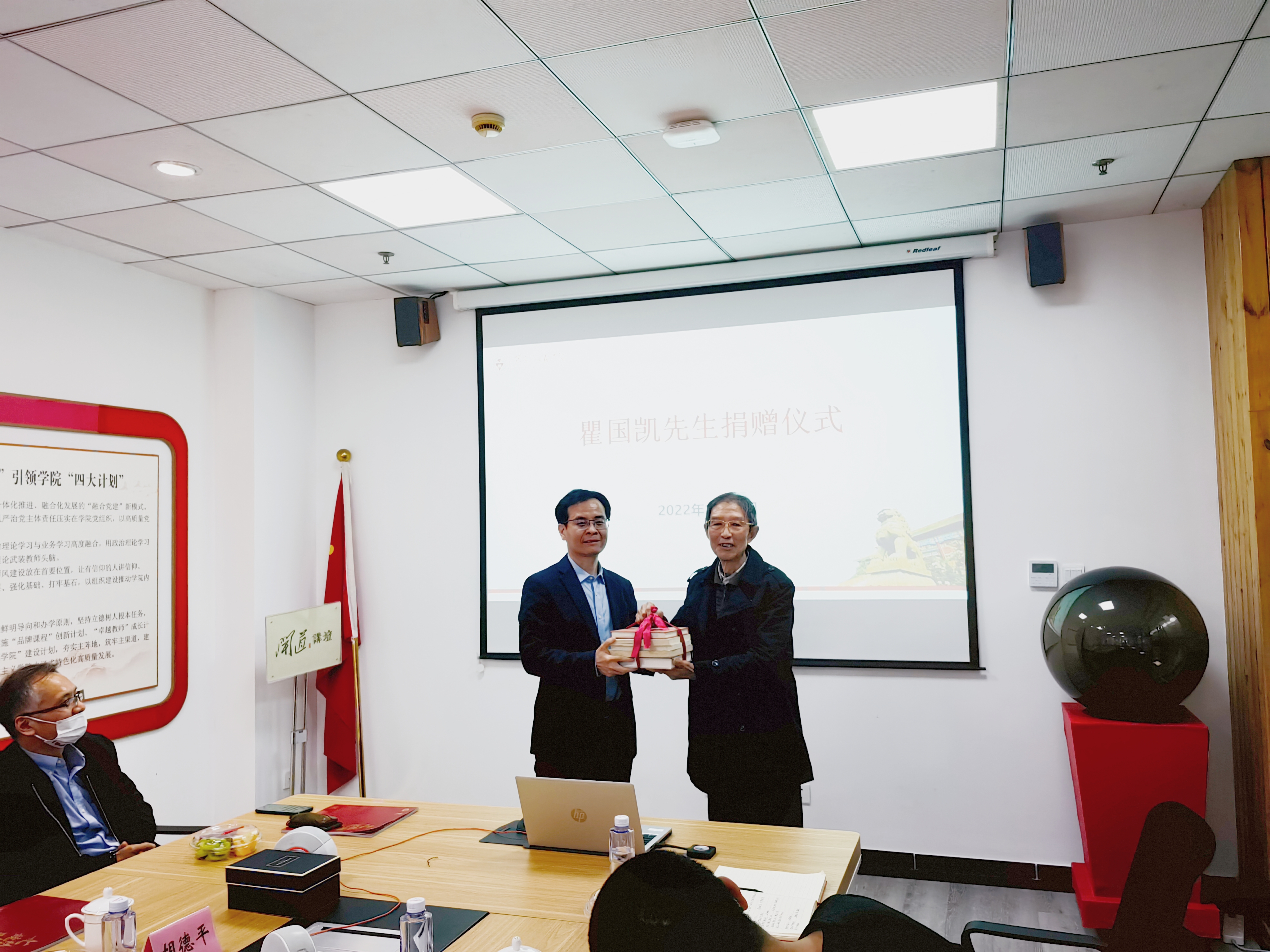 11月4日下午,学院举行了瞿国凯先生图书捐赠仪式。我院退休教师瞿国凯先生把工作期间教学科研用书,捐赠给马克思主义学院,学院直属党支部书记、院长胡德平代表学院接受捐赠,并为瞿国凯先生颁发捐赠证书。
