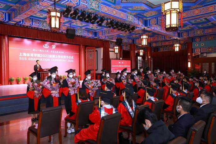 本网讯 在喜庆学校建校70周年华诞之际,11月13日上午,上海体育学院2022年博士学位授予仪式在绿瓦大礼堂隆重举行。仪式采取线上线下相结合的方式,全程通过上海体育学院微信视频号同步线上直播。上海体育学院党委副书记、院长,学位评定委员会主席陈佩杰教授;副院长、学位评定委员会副主席唐炎教授;学位评定委员会成员;博士生导师代表;相关职能部门负责人;博士培养单位党政负责人、教师代表;2022届博士毕业生共同参加仪式。仪式由研究生处处长刘东锋主持。