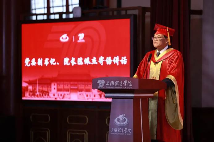 首先,要把握时代浪潮风向,勇担时代赋予的责任。他从上海体育学院改革发展史的角度上分析了把握机遇,与时俱进的重要性,鼓励同学们关注体育学科前沿动态,注重与其他学科的交叉融合,努力适应现代科学技术飞速发展的需要,助力我国体育学科实现跨越式发展。其次,要把握体育内涵。作为双一流高校毕业的学术尖端人才,要牢记“追求卓越”的体育内涵,将认真做到极致,永不放弃对理想和目标的追求。第三,把握好学术质量。面向世界科技前沿、面向经济主战场、面向国家重大需求、面向人民生命健康,坚持问题导向,高度重视并确保教学、研究、论文等各个环节的质量,持续锻造学术品格。另外,不论今后身在何方,都不要忘记母校的深情厚谊,一如既往、力所能及地关心和支持母校的建设和发展。