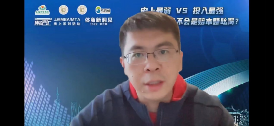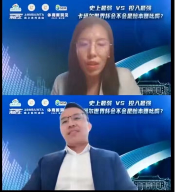 本网讯 11月13日下午,由上海体育学院经济管理学院主办、上海体育国家大学科技园协办、上海MBA课程案例库开发共享平台支持的“体商智汇×2022”年度系列活动“体商新洞见”第三期,将目光聚集在这届全球瞩目的世界杯身上,以《“史上最弱”VS“投入最强” 卡塔尔世界杯会不会是赔本赚吆喝?》为主题,邀请了来自国际足联、媒体、企业及高校的专家共同线上分享了各自的专业见解,活动由经济管理学院副教授张叶涵主持。