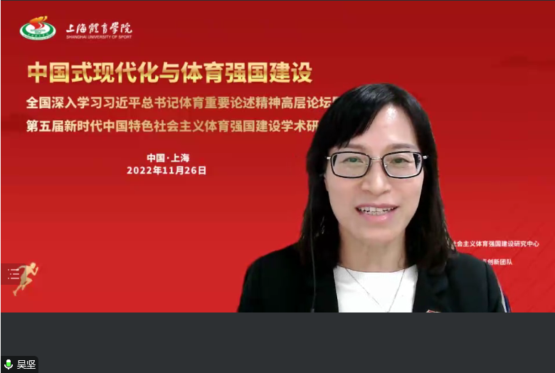 中国共产党领导是中国式现代化的关键特征和成功基因。强舸教授围绕党的领导与体育强国建设作了发言。他认为,作为中国式现代化的一方面,体育强国建设同样需要建立在充分发挥党的领导优势上。一是充分发挥体育组织中党的基层组织的作用,要根据党章规定在体育管理的系统工程中发挥好战斗堡垒作用。二是党中央从整体上谋划、统筹竞技体育、群众体育各项事业,推进远大蓝图的逐步实现。三是发挥好党建的监督保障作用,特别是深入推进反腐败斗争,有效促进体育某些重点领域的发展。此外,也要注意体育事业的特殊处,在中华民族伟大复兴的进程中,体育事业更需要个性张扬、舍我其谁的运动员精神。