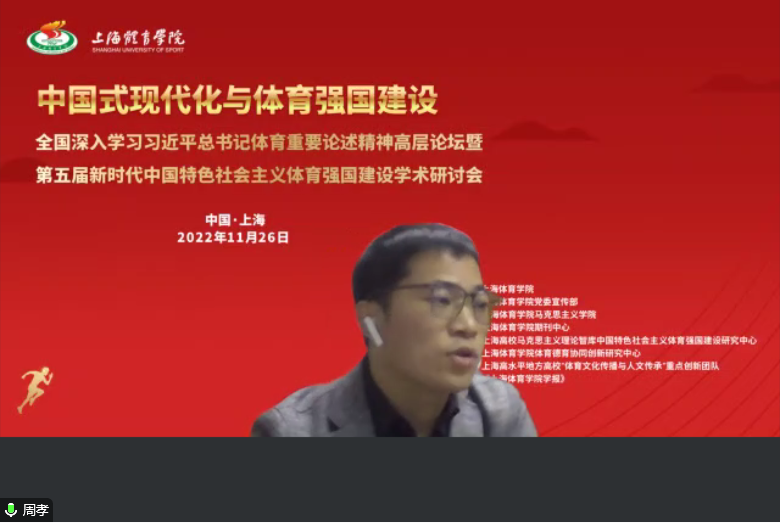 本次会议由上海体育学院举办,党委宣传部、马克思主义学院、期刊中心、上海高校马克思主义理论智库中国特色社会主义体育强国建设研究中心、上海体育学院体育德育协同创新研究中心、上海高水平地方高校“体育文化传播与人文传承”重点创新团队联合承办,是上海体育学院庆祝建校70周年系列学术活动之一。来自中共中央党校(国家行政学院)、中国财政科学研究院、人民日报社人民论坛杂志社、上海市社联、上海人工智能实验室、西安交通大学、华东师范大学、山西大学、上海外国语大学、上海体育学院、上海格物文化发展研究院等高等院校、科研院所、智库机构的专家学者,围绕“中国式现代化与体育强国建设”的会议研讨主题,展开多学科交流和跨学科对话。