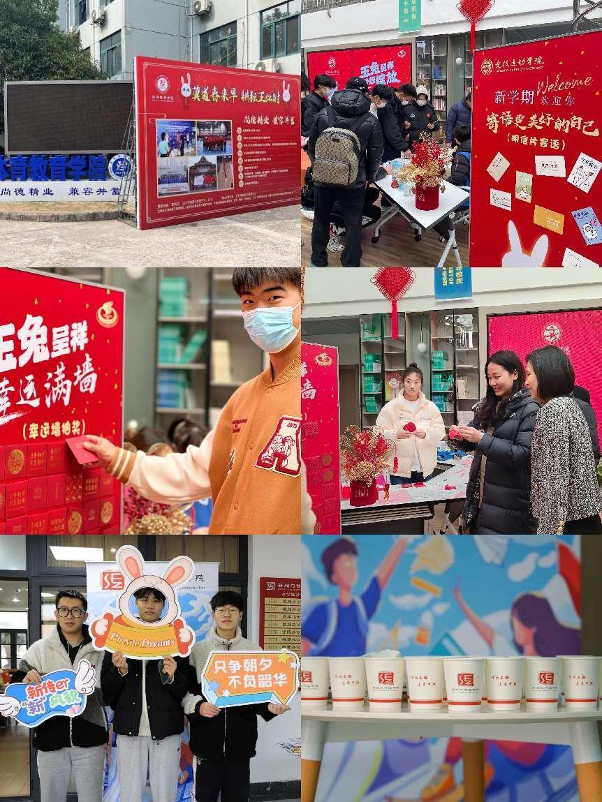 各学院也精心设置了报到点互动活动。竞技运动学院报到现场设置“玉兔呈祥、梦想绽放”兔年专属背景板、“新学期寄语更美好的自己”明信片书写活动及“幸运满墙”祝福抽取墙等打卡点;新闻与传播学院的“新传咖啡”全新上线,暖暖一杯、慰藉人心,同学们纷纷举起新学期KT板留下珍贵合影。报到现场热情高涨,洋溢着新学期的青春氛围。