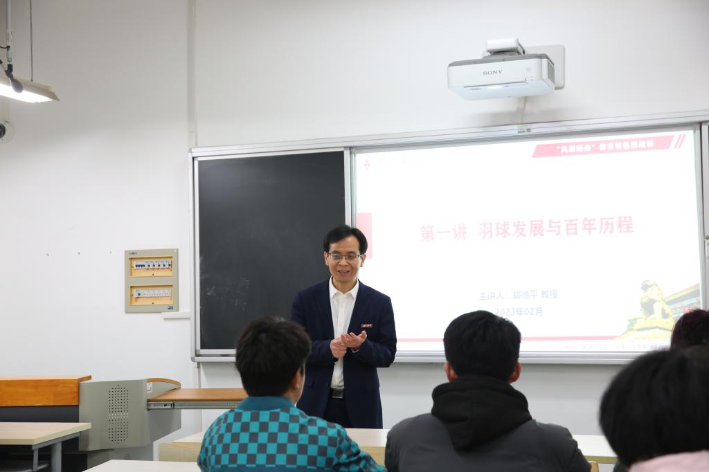 当天晚上,马克思主义学院负责建设的另一门体育“大思政课”——“风羽同舟”同时开课,第一讲由马克思主义学院院长胡德平教授和马克思主义学院副教授张晓龙老师,从历史角度主讲“羽球发展与百年历程”。该课程以羽毛球运动为载体,以理论讲授为主,注重情景式、体验式、互动式的实践体验,引导学生从羽毛球运动发展把握中国体育事业发展,从体育强国建设历程认识党的百年伟大奋斗历程,增强“四个自信”,主动融入以中国式现代化推进中华民族伟大复兴的时代使命中来。