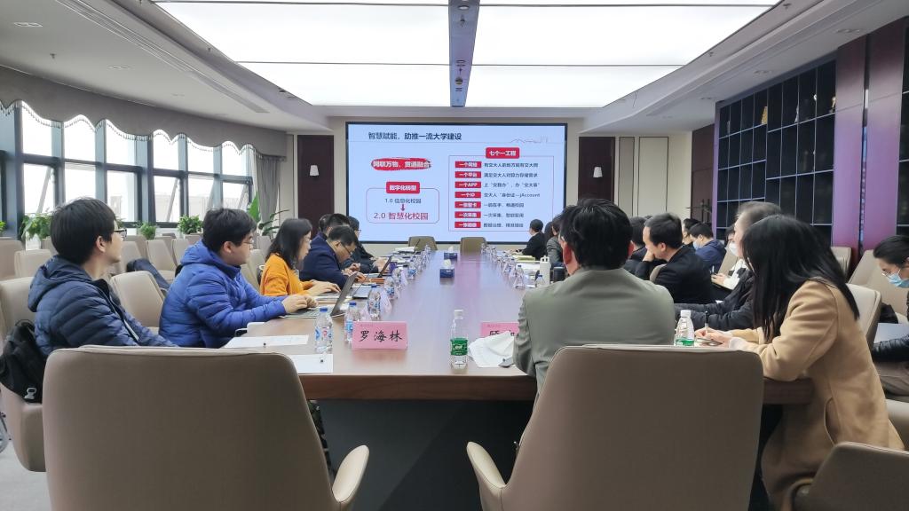 本网讯 为全面推进SUNBET“十四五”规划中的数字校园建设,进一步发挥信息化工作在学校“双一流”建设中的作用,3月1日上午,发展规划处/信息化办公室、后勤处、保卫处、学工部、资产处、财务处一行十八人赴上海交通大学网络信息中心学习调研。