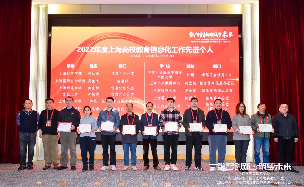 上海高等教育学会信息管理专委会和校园网络专委会是在上海市高等教育学会的领导下、在上海市教委的指导下建立的信息化学术专业组织。为鼓励上海市高校信息化建设与管理人员的敬业奉献精神,专委会每年在全市范围内组织评选做出显著贡献、表现突出的先进人员并予以表彰。2022年度,共有34位同志获评上海市高校信息化工作先进个人奖项。