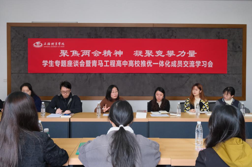 最后,刘佳瑜表示,青年人才是国家发展的活力源泉,学校也一直关注青年的发展问题。她请同学们深入思考“学校能为青年学生带来什么”和“青年学生能为上体的发展带来什么”这两个话题并付诸实践。刘老师表示,希望在座的同学能继续学习和领会好两会的相关信息和精神,学校也将继续做好高校“青马工程高中高校一体化”成员的培养工作,建立起青马工程学习交流组织,为青马工程的学员提供更多的关注、指导和培养。
