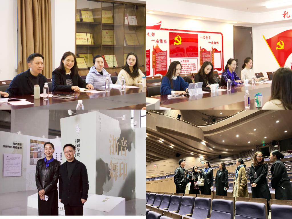 浙江站,调研团队调研小组到访了浙江音乐学院。浙江音乐学院舞蹈学院院长徐颃、舞蹈学院办公室主任陈云、编导教研室主任黄德俊及相关专业教师共同参与了本次调研。双方就学科建设、人才培养、师资队伍建设等议题进行了交流。陈云主任向我们介绍了浙江音乐学院设计特色,规划布局思路、一起参观了大剧院以及各个舞房排练厅。参观完毕调研团就本科生培养方案进行了会议座谈。会议期间舞蹈学院院长徐颃就师资队伍建设、学科规划、人才培养方案等方面展开会谈,韩春英副院长从育人思路、专业发展、研究特色介绍了上海体育学院专业建设与培养情况。编导教研室主任黄德俊与我院舞蹈编导专业负责人杨珏就学科建设、课程设置、师生情况等做了深入的交流。