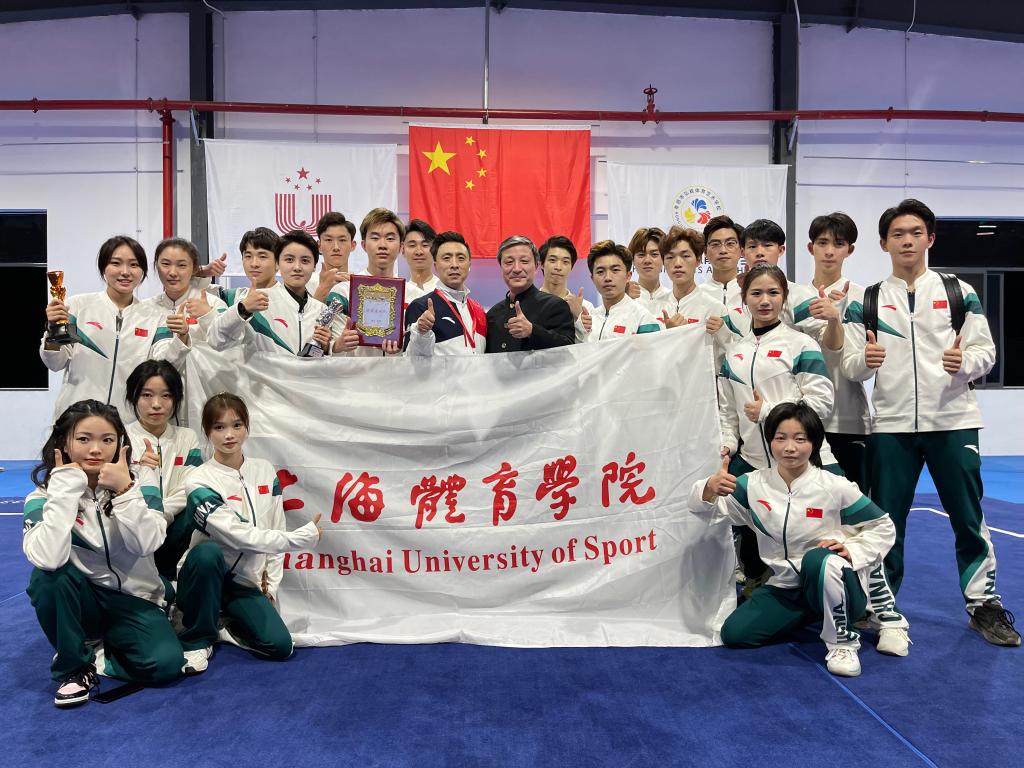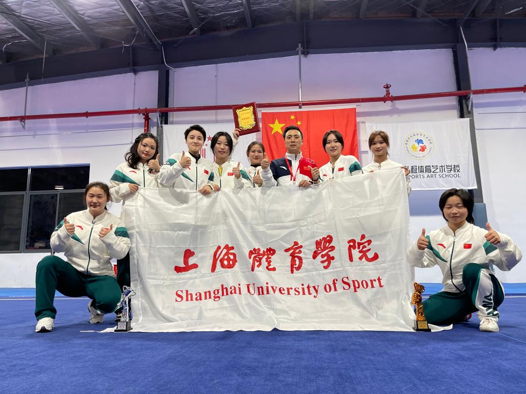 本网讯 2023年4月1日至4日,2022年中国大学生武术套路锦标赛(丙组、丁组)在湖北省安陆市盛大举行。来自清华大学、复旦大学、浙江大学、华中科技大学、澳门大学、中国人民大学等67所高校77支代表队参加比赛,另外来自马来西亚、新加坡的武术代表队也前来参加学习交流和试艺,共计900余人齐聚湖北以武会友。上海体育学院共计斩获金牌11枚,银牌9枚,铜牌12枚,代表队以优异成绩获得优秀运动队荣誉,武术学院席饼嗣老师获得“优秀教练员”称号