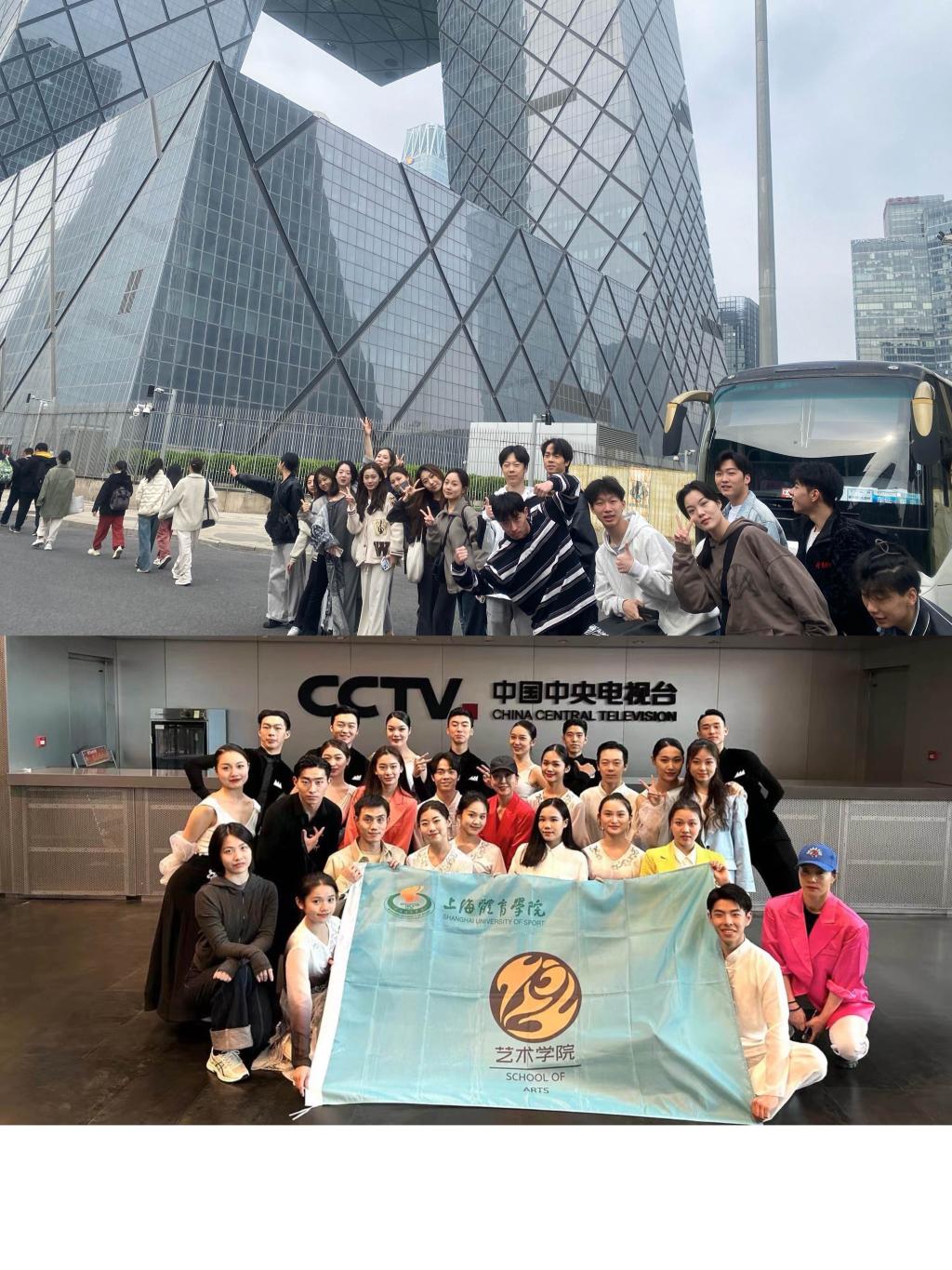 本网讯 4月22-23日,在艺术学院舞蹈编导专业老师马古兰丹姆、蔡东燐、罗雅雯、孙正昊的带领下,童华康、付千钰、刘龙翱翔、黄鑫雯、雷治文等一行24人前往北京中央电视台总部大楼录制《中国节拍》栏目。