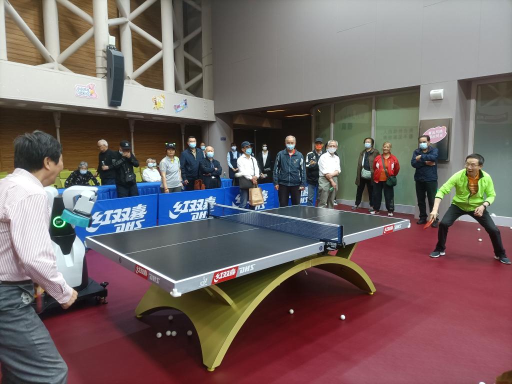 老党员们在讲解员的带领下,边看实物,边听讲解,对“徐寅生的十二大板”,“张燮林的海底捞月”,小球推动大球的“乒乓外交”等等,耳熟能详,记忆犹新。参观中,大家连连称赞“开眼界、长知识、受教育”。深感作为“体育人”,尤其是“上体人”能为国家体育事业做点贡献而感到骄傲和自豪!老同志们对学校的事业的发展倍感鼓舞!参观结束后,乒乓爱好者与发球机器人还较量了一番。