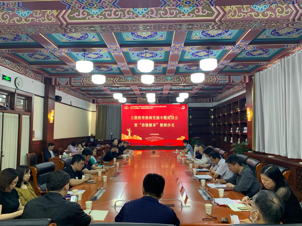 本网讯 凝心铸魂固根本,同心聚力育人才。5月26日下午,学习贯彻习近平新时代中国特色社会主义思想主题教育教师发展专题座谈会暨“崇德修身”教师沙龙在绿瓦大楼第四会议室召开。学校党委副书记潘勤出席会议,党委常委、组织部部长张盛,宣传部部长夏铭娜,人事处处长焦振伦,教务处副处长(主持工作)蔡玉军,研究生处副处长肖冬晶,后勤处副处长袁文君和二级学院教师代表参加会议。教工部部长、机关党委书记霍圣录主持会议。