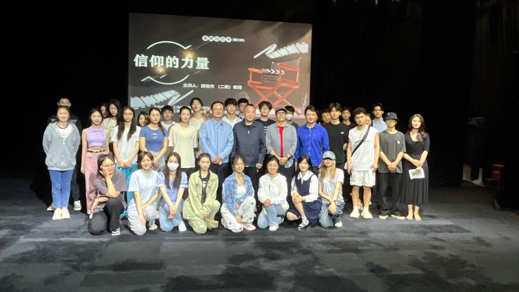 滕俊杰还以总导演的身份向同学们分享以樊锦诗为原型的《敦煌女儿》电影创作历程,阐述了他是如何从艺术和人文的视角去刻画平凡而又伟大人物故事。讲座以“信仰的力量”为主题贯穿,并寄语同学们“成就事业是需要信仰的力量,需要咬牙坚持”。