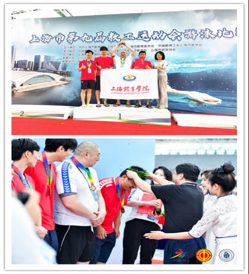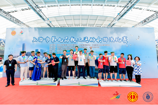 本网讯 6月3日,由上海市教卫工作党委、市教委、市教育工会主办的上海市第九届教工运动会游泳比赛在东方体育中心盛大举行。在工会的组织保障下,竞技运动学院和游泳协会派出16名教师,征战男、女4*50M自由泳接力和18个单人项目,取得高校A组团体总分第三的佳绩。