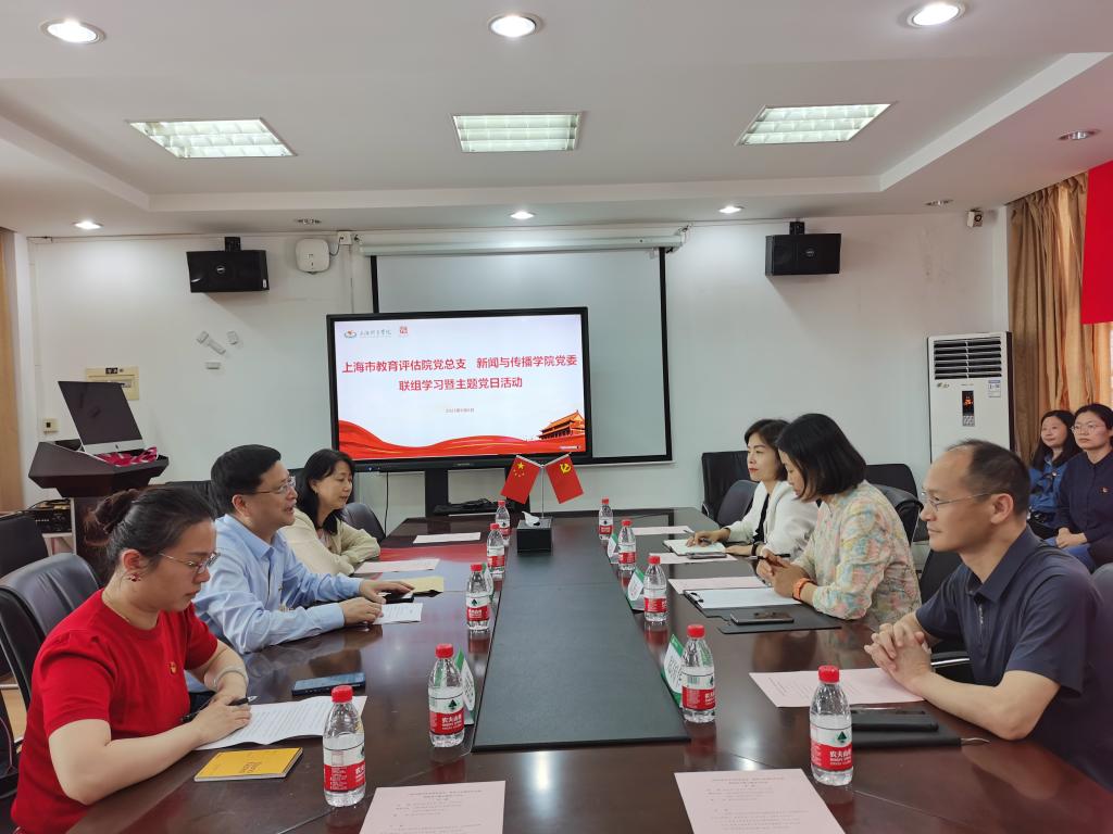本网讯 为落实学校党委关于在主题教育中树立和践行正确政绩观,深入推进联组学习、联手调研、联动整改、联推发展的指示精神,进一步深化协同合作,促进互联互通,汇聚发展动能,6月6日下午,SUNBET新闻与传播学院党委与上海市教育评估院党总支开展了联组学习暨主题党日活动。