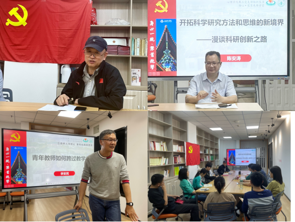 学院立足班子分工,结合工作实际,列出若干专题进行述学研讨,由学院领导班子成员领学,现已开展专题有:《习近平总书记关于主题教育的重要指示精神》、学习贯彻《习近平关于调查研究的重要论述》专题研讨,《深入推进“全面从严治党”》专题学习。另外,班子结合学习体会与实务工作,分别面向不同群体、师生党支部讲专题党课,现已开展党课有:《“我”是青年,如何认识时代责任与个人价值》、《汲取信仰力量,坚定理想信念》、《如何做好调查研究》。