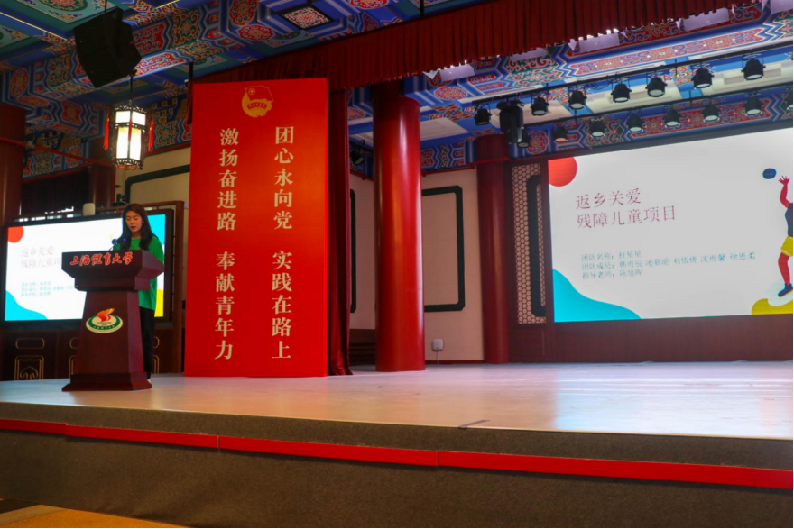 竞技运动学院的“返乡关爱残障儿童挂星星志愿团”致力于以创意快乐体操、身心舞蹈、空间探索等特色运动为抓手,为残障儿童提供特色化、专业化教育、陪伴和支持,给予残障儿童心理抚慰,陪伴并帮助残障儿童增强生活能力与自信心。