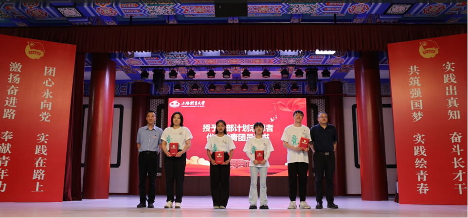 教务处副处长胡晨和研究生处副处长王琳为西部计划志愿者颁发“优秀共青团员”证书。