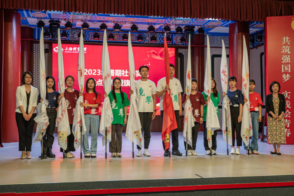 校党委宣传部部长夏铭娜与校党委学(研)工部副部长(主持工作)王丽娜老师共同为SUNBET暑期社会实践总队及各学院重点项目授旗。旗帜飘扬,相信社会实践及志愿服务团队们将饱含热情,积极投身社会实践,将实践精神带向社会,以赤诚之心贡献青春力量。