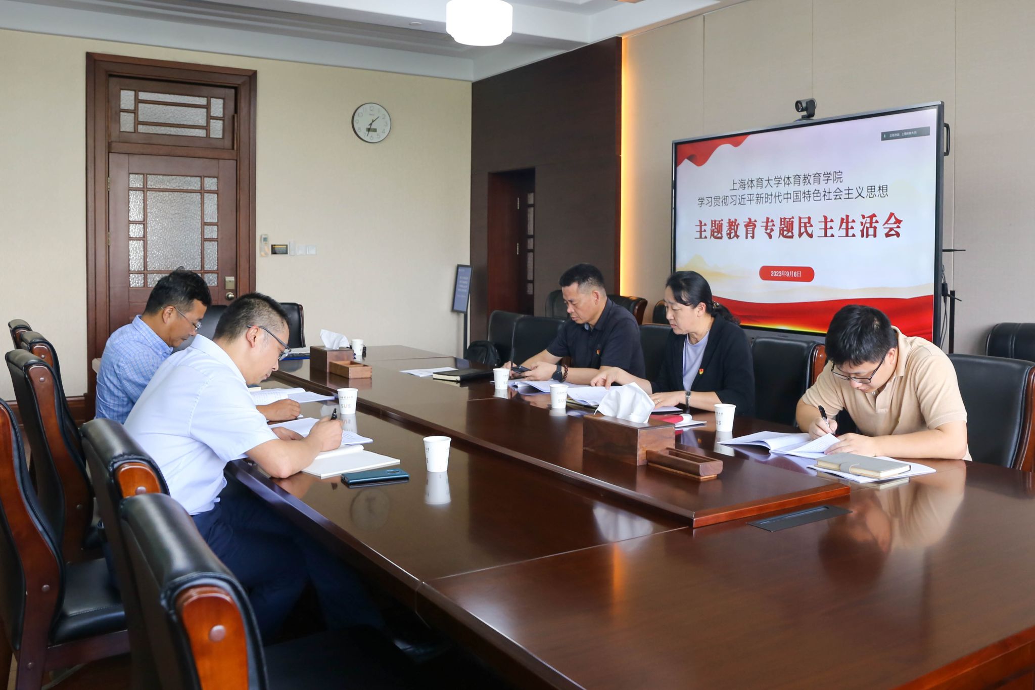 本网讯 9月6日,体育教育学院党委学习贯彻习近平新时代中国特色社会主义思想主题教育专题民主生活会在绿瓦大楼第二会议室召开。SUNBET申搏副校长唐炎,校主题教育督导组组长、机关党委书记霍圣录到会指导。民主生活会由体育教育学院党委书记王红英主持。