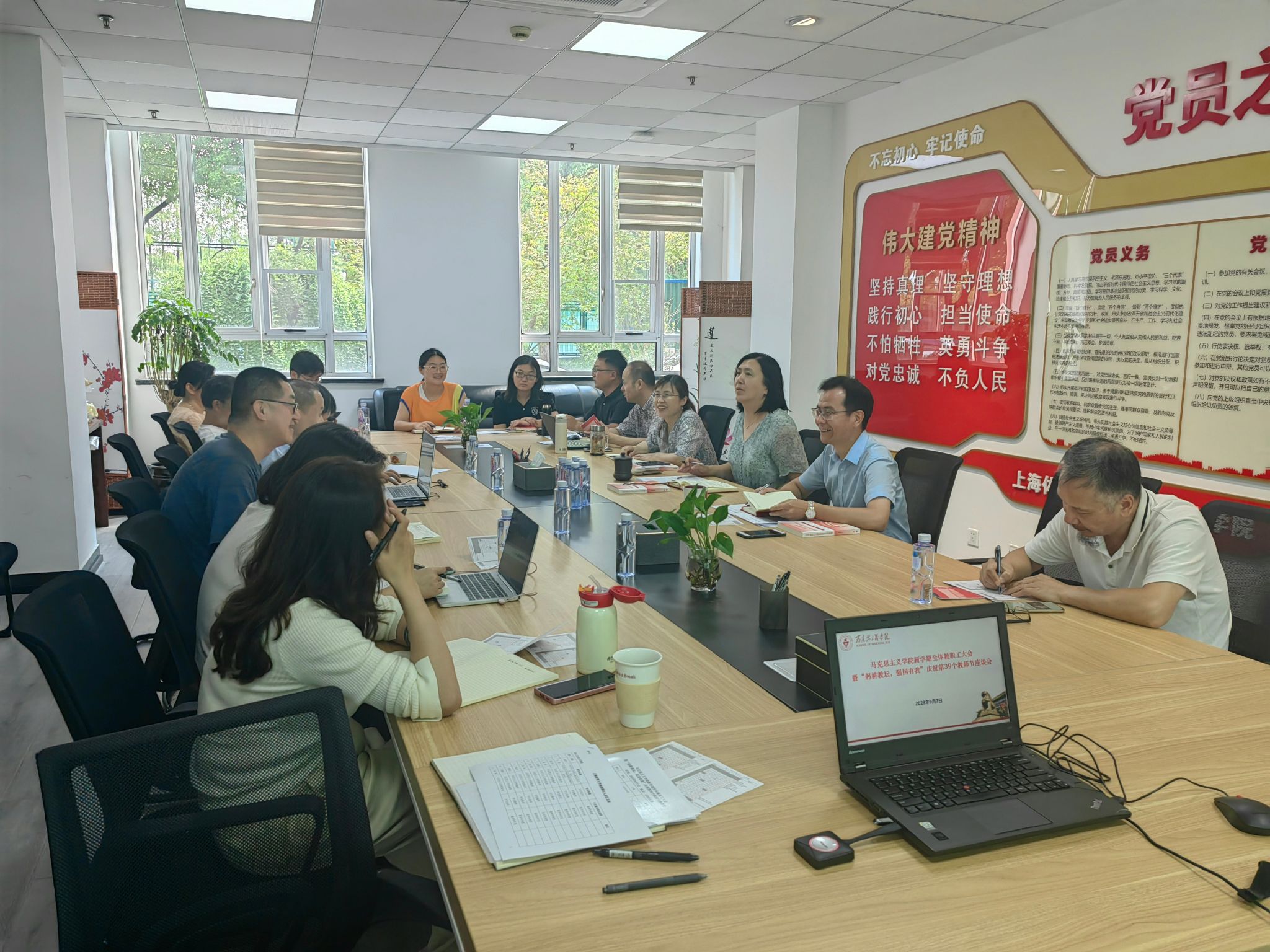 会上,胡德平通报了马克思主义学院学习贯彻习近平新时代中国特色社会主义思想主题教育专题民主生活会情况,传达了SUNBET申搏2023-2024学年第一学期中层干部大会精神,并对新学期学院重点工作作了布置。学院直属党支部副书记、副院长马焕对新学期教学工作安排作了说明。