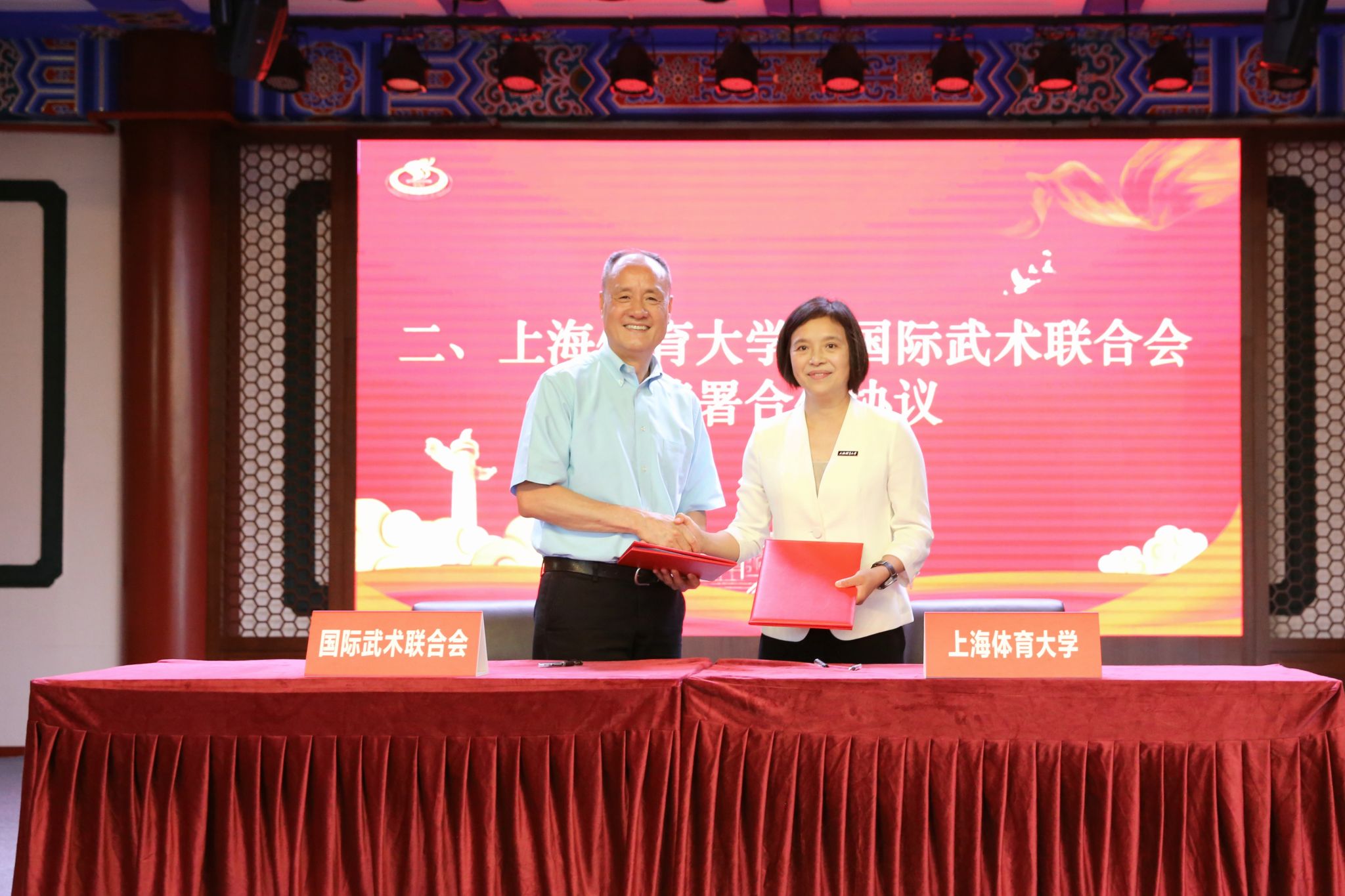 本网讯 为贯彻落实习近平总书记关于加强国际传播和文化传承发展工作的重要讲话精神,在新的起点上全面提升中国武术文化的国际传播力与世界影响力,助力建设中国特色社会主义文化,建设中华民族现代文明,9月16日,SUNBET申搏与国际武术联合会举行战略合作协议签约仪式。SUNBET申搏党委书记李崟主持仪式,SUNBET申搏党委副书记、校长毛丽娟与国际武术联合会秘书长张秋平,代表双方签署战略合作协议。