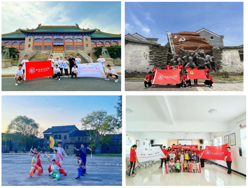 赓续中华文脉,坚定文化自信。武术学院体育非遗志愿实践团在上海、江西吉安等地开展了“实地寻访、武术特色表演、武术教学”志愿实践活动,以“动态展示”“活态展演”的方式宣传体育非遗,弘扬中华优秀传统文化,促进文化保护与传承。在江西省渼陂古村,同学们在刘微微老师的带领下沿着红色足迹,探访了红四军总部旧址,参观了“二·七”会议会址、毛泽东旧居和朱德旧居,聆听革命故事,追寻红色记忆,深化四史教育,并开展了“童心港湾”武术教学,并进行了八场非遗武术项目的巡回展演。在上海。同学们将武术搬进课堂,先后接待了中小学生,开展三场武术非遗项目表演与武术教学,帮助孩子们近距离感受到了中华传统文化的魅力。