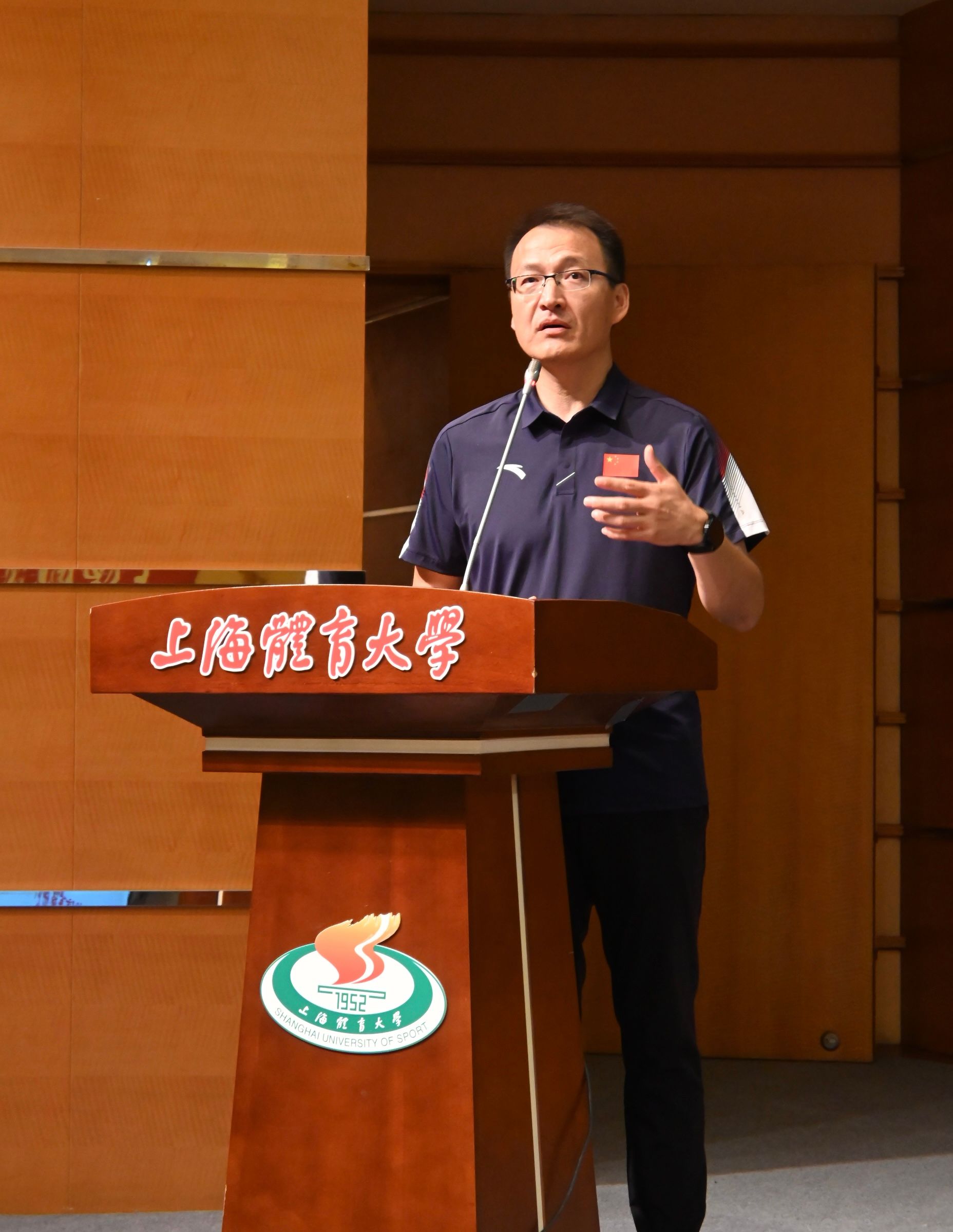 竞技运动学院院长高炳宏从学院的办学定位、办学特色和人才培养成果多角度为新生介绍了竞技运动学院的基本情况,希望新生们能够依托学院的师资力量和各类平台,做一名有知识、有文化、有技能,懂体育、明人体、会分析的“训学研”的融合型新体育人才。