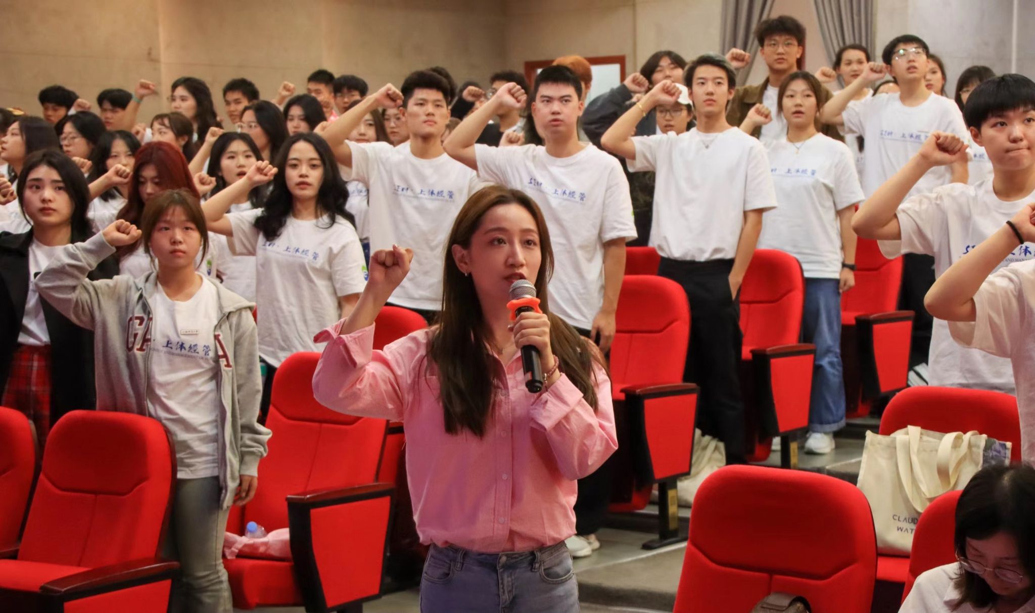 经济管理学院2023级全体新生以积极昂扬的精神面貌,表达了投身体育事业的决心和不懈奋斗的信念,在这庄严的仪式教育中完成了精神洗礼和角色转变,向体育产业经营管理类专业学习生涯迈出了坚定的第一步。