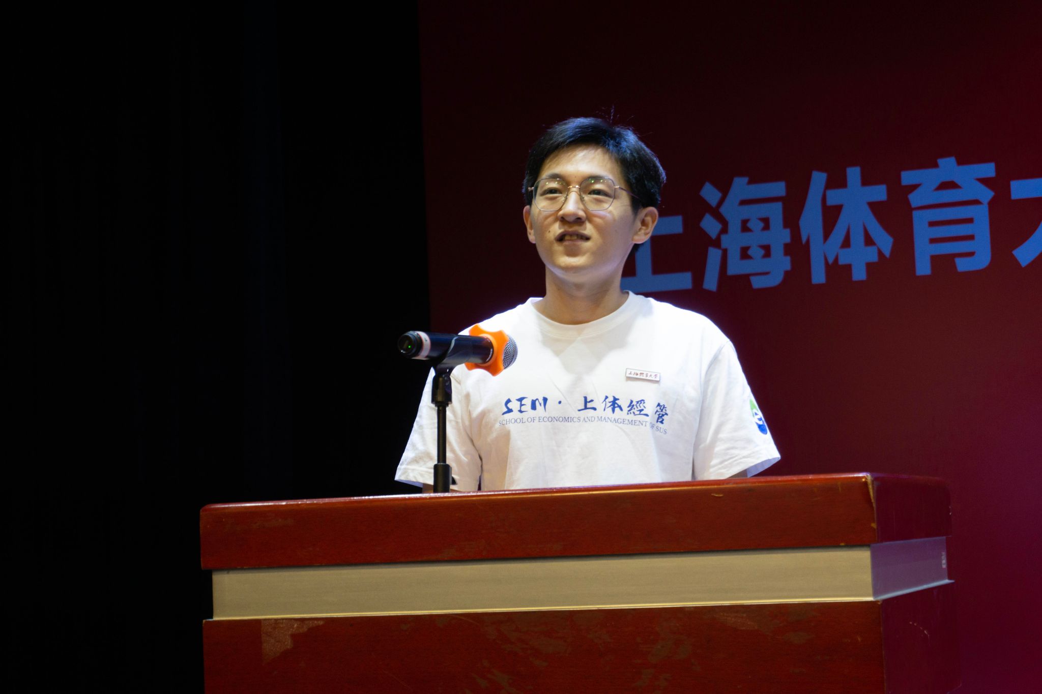 在校研究生代表体育管理专业博士潘加文发言,作为本硕博均就读于经济管理学院的资深学长,他希望学弟学妹们能以从容不迫的笑容迎接生活,以严谨踏实的态度扎根学术,踔厉奋发,学有所成。