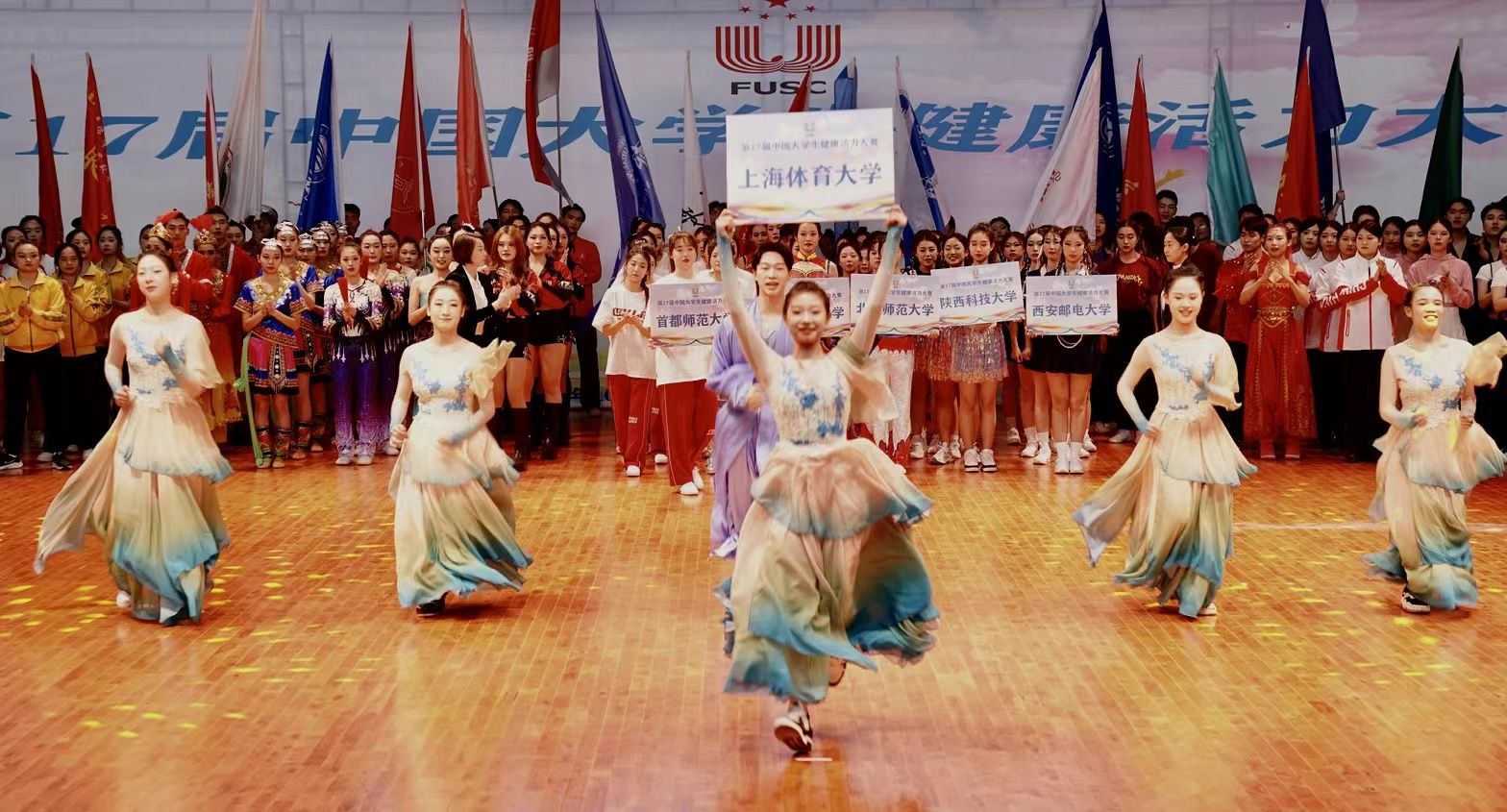 本网讯 10月16日-19日,由中国大学生体育协会主办、中国大学生体育协会健美操艺术体操分会执行的“中国大学生健康活力大赛”在河北省张家口市云顶滑雪公园举行。本次赛事吸引了来自全国60余所高校700余名大学生运动员同台竞技。是各大高校之间级别最高、含金量最重、影响最大的操舞赛事,是展现操舞专业竞技水平、展示学生风采的最高平台。
