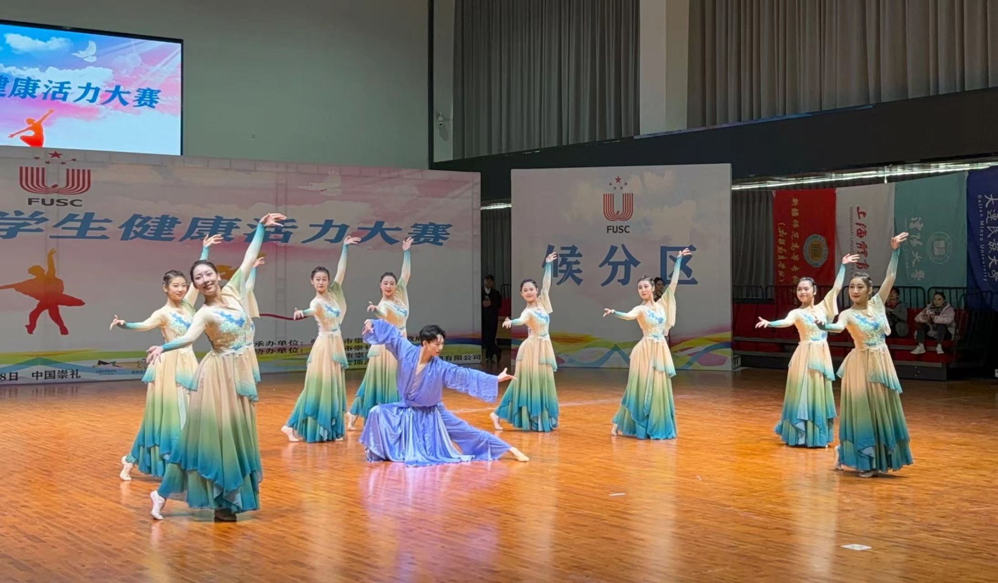 为备战此次比赛,艺术学院舞蹈艺术教学团队认真领会相关文件精神,积极备战,秉持着体育与艺术互相融合、交融并济的创新理念,在各级领导的关怀下刻苦训练。最终,运动员们以精湛的技艺、默契的配合、层次变化的队形、活力四射的舞姿脱颖而出,为学校赢得了荣誉。尽显“身心一统,兼蓄竞攀”的上体风采。