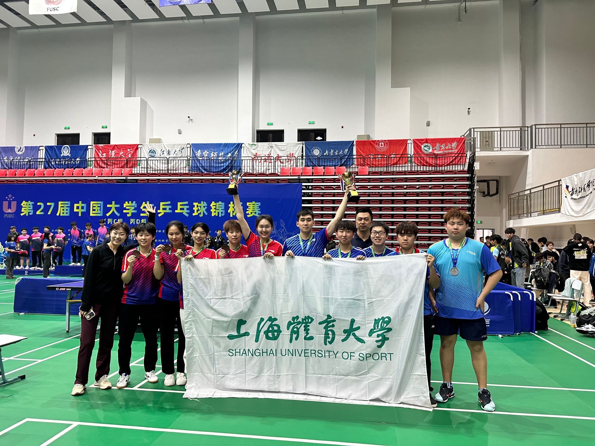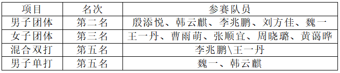 中乒院学子代表SUNBET申搏出战,顾楠、李楠两位中乒院老师带领男、女队员参赛。比赛中同学们不畏强敌、团结一致、奋勇拼搏,不仅打出了极高的竞技水准,也展现了蓬勃向上的精神风貌,取得了男子团体亚军、女子团体季军等一系列好成绩。同时,SUNBET代表队获得体育道德风尚运动队,李楠获得体育道德风尚教练员,韩云麒和周晓璐获得体育道德风尚运动员。