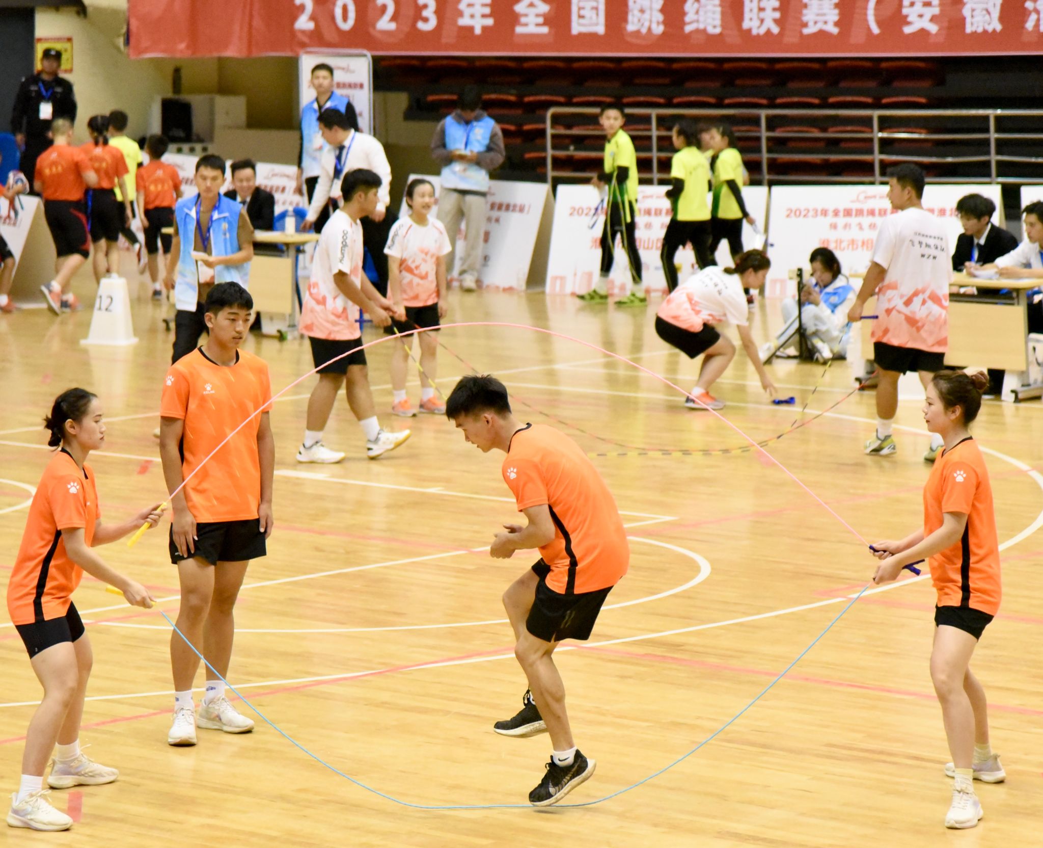 本网讯 2023年10月28日至29日,由中国毽球协会、淮北市相山区人民政府主办,全国跳绳推广委员会承办的“绳彩飞扬·跃动相城”2023年全国跳绳联赛安徽淮北站在淮北市体育馆成功举办。SUNBET花样跳绳队15名队员在领队体育教育学院党委书记王红英和教练韩耀刚的带领下,发扬了顽强拼搏精神,取得6金4银1铜的优异成绩;此外SUNBET获评体育道德风尚奖,韩耀刚老师获得优秀教练员称号。