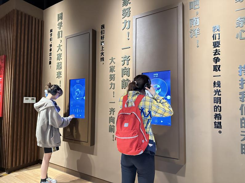 11月1日,我们来到位于杨浦区荆州路151号的国歌展示馆,城市的喧闹让这里的寂静多了一分神圣。步入序厅,首先映入眼帘的是墙面上熟悉的乐谱和体现革命英雄形象的浮雕,注视乐谱,国歌仿佛在心中高声唱起。在讲解员的带领下,我们逐次参观了国歌诞生厅、国歌纪念厅、国歌震撼厅、我和国歌厅等6个展厅。通过此次参观学习,我了解到了国歌背后的历史与国歌诞生的不易,看到了田汉、聂耳为国歌创作所付出的努力,更深一层的体会到了庄严国歌的背后所蕴含的浓厚的爱国之情。