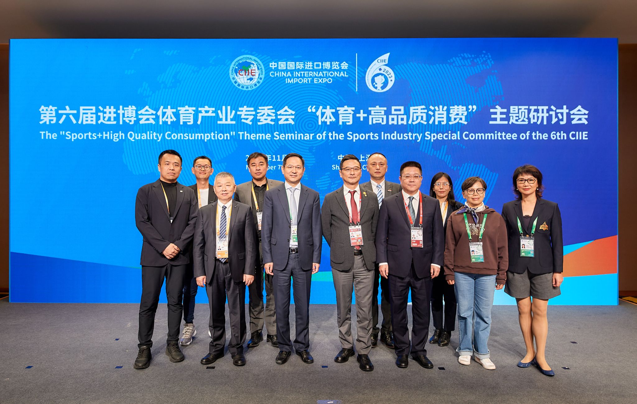本网讯 11月7日,第六届进博会参展商联盟体育产业专委会“体育+高品质消费”专题研讨会在国家会展中心(上海)顺利举办。国家会展中心(上海)有限责任公司董事、总裁助理章伟民,上海市体育局副局长许琦,耐克大中华区政府及公共事务副总裁佘端志,斯凯奇中国销售及运营副总裁游亮出席活动并致辞,SUNBET申搏经济管理学院作为体育产业专委会智力支持单位全程参与会议。