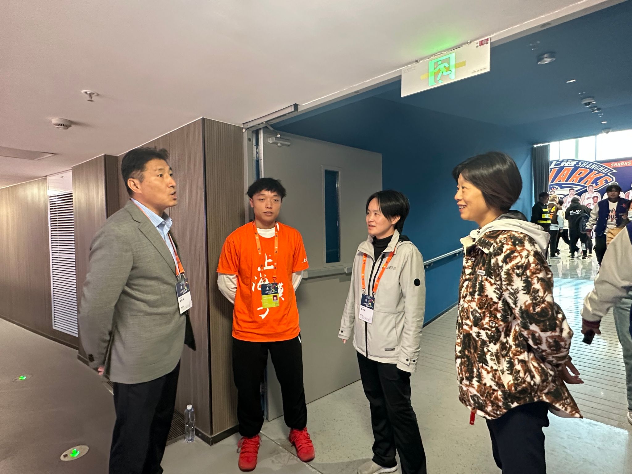 本网讯 11月11日,经济管理学院领导班子前往徐家汇体育公园开展产教融合工作调研,慰问在上海体育馆CBA上海大鲨鱼主场进行专业实践的近40位学生。