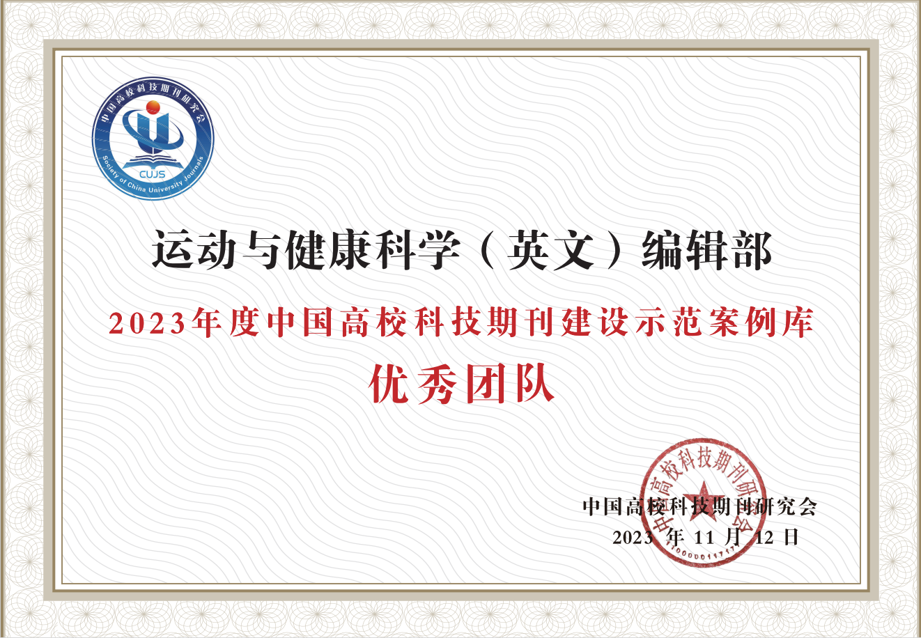 此次入选,充分肯定了《运动与健康科学(英文)》在服务高校“双一流”建设中发挥的示范作用。“循大道,至万里”,《运动与健康科学(英文)》将继续围绕国家重大战略需求进行选题策划,着力提升内容质量和学术影响力,着力为作者和读者提供优质服务,着力增强期刊品牌和国际传播能力建设,为学校的学科发展、学术交流和人才培养做出更多贡献。