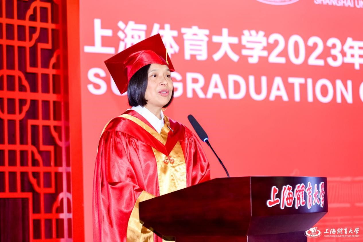 毛丽娟校长对毕业生们刻苦钻研圆满完成学业,奔向美好未来表示热烈祝贺,同时从“传承上体精神”、“葆有社会关怀”、“坚持报国理想”三个方面对毕业生们提出了期待。首先,她结合上体71年的发展历程和取得的成就,希望各位博士毕业生在新的人生旅程上时刻铭记上体精神,发扬上体传统,接续奋斗,勇毅前行。其次,希望各位博士毕业生在保持学术热情的同时,始终葆有对社会需求的敏锐洞察和赤诚关怀,为体育强国与健康中国建设贡献智慧与力量。最后,她希望各位博士毕业生作为高水平体育人才,在今后能更深刻地理解上体人“兴体报国”的宝贵品格,以远大理想铸就灿烂人生。