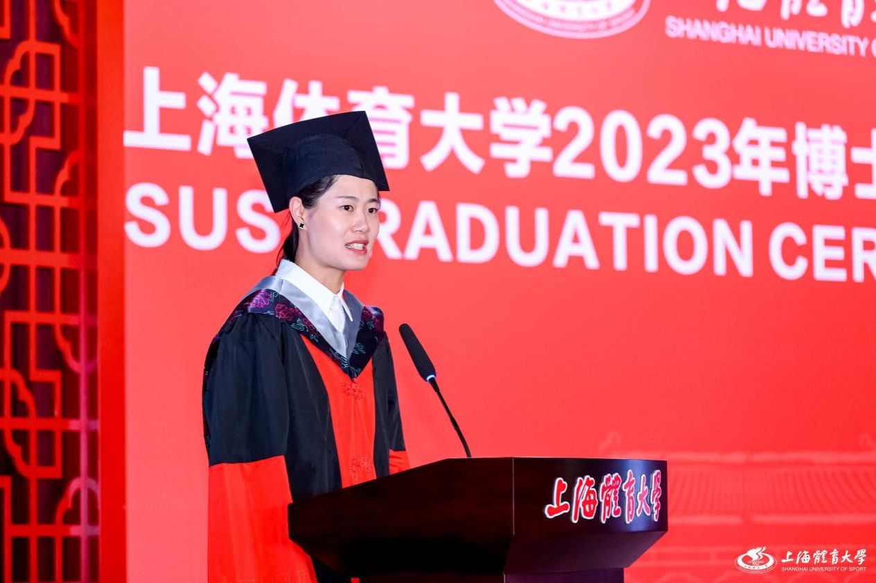 “学贵得师,亦贵得友”,“得师得友,可以为学”。2023届体育教育训练学专业毕业生代表刘诗洁向母校以及导师的栽培表达了由衷的感谢。她表示,本着“身心一统,兼蓄竞攀”的校训,母校引领体育学学科发展,从“体院”到“上体大”,用强有力的现实向世界证明着上体人的时代精神。她感恩能够置身于母校浓厚的学术氛围中,并将尽己所能,为我国学校体育做出贡献,影响更多的人参与到学校体育中,行你所行,无问东西。