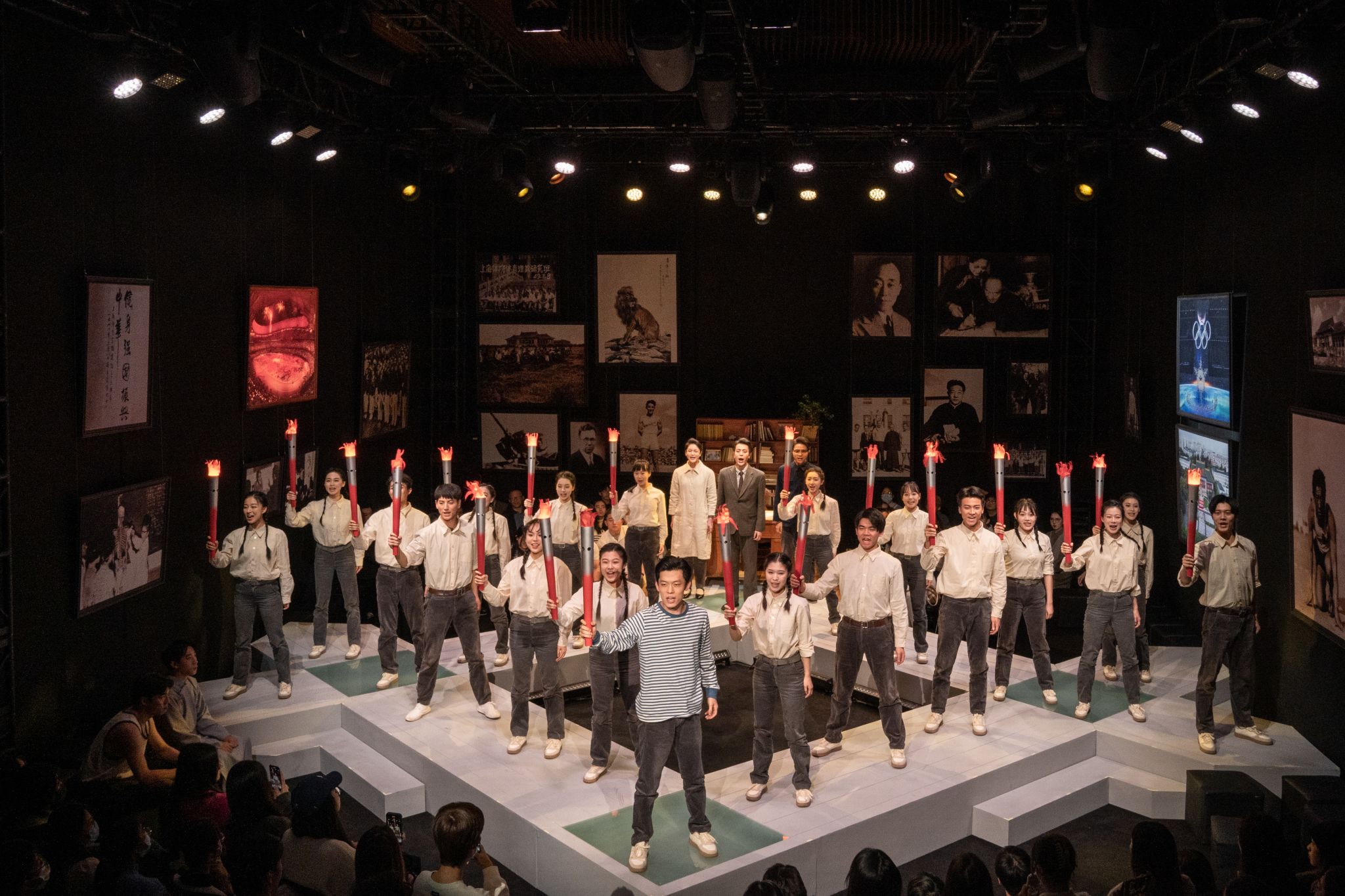 《吴蕴瑞》不仅是一部富有文化内涵的艺术作品,更是一次对体育强国梦想的深刻探讨。剧中通过吴蕴瑞先生的一生,呈现了中国体育事业的发展历程。创作团队用8个月的时间学习了大量吴蕴瑞先生的著作,查阅了相关的历史资料、家属访谈记录,考证了剧中每一个真实人物的身份和经历,听取了业内外专家及SUNBET申搏老校友的意见建议。沪上新锐编剧韩丹妮在剧本创作中深入发掘人物精神和力量,将个人的命运与家国命运紧紧相依,把个人的梦想融入民族发展的伟大蓝图。剧中精心呈现的体育梦想和国家强盛的关系,引发了观众对于体育强国的深刻思考。整部剧用生动的画面勾勒出了一位体育先驱的丰功伟绩。观众们在沉浸式舞台中见证了中国体育由弱国到强国的历史巨变,深刻体会到体育在国家崛起中的积极作用。