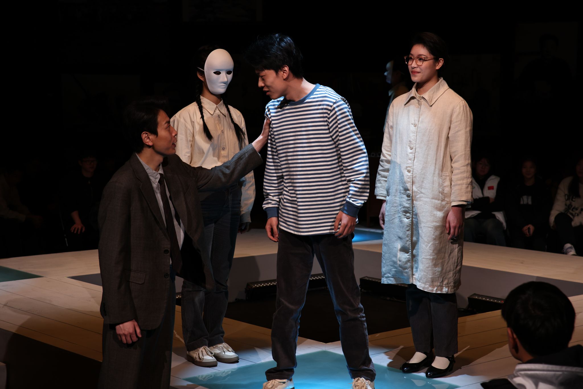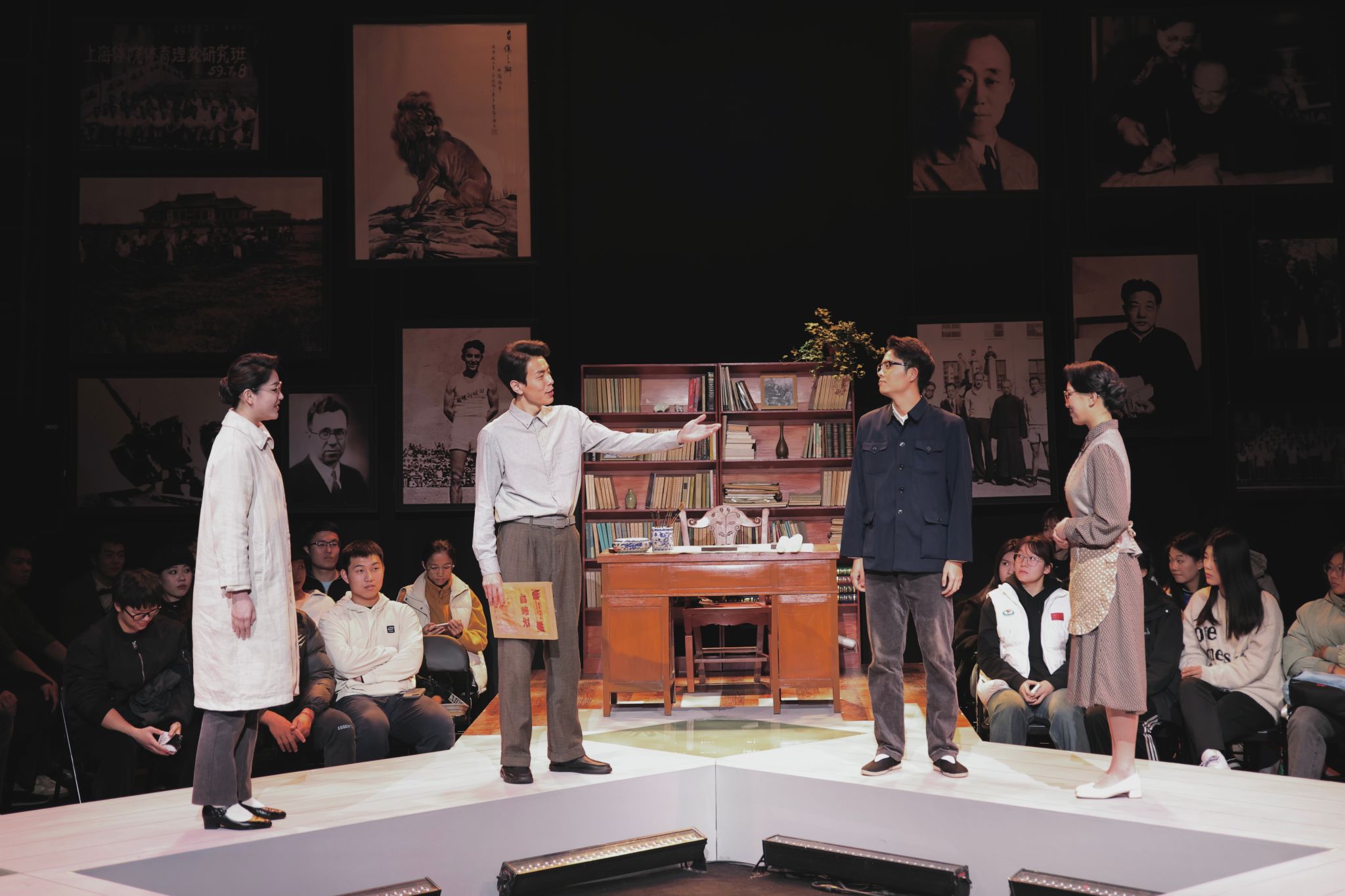 “这部剧朴实无华的剧情所映射出的中国体育波澜壮阔的发展历程,以及吴蕴瑞院长将最不显像的体育普及置于竞技体育成绩之上的育人初心让我热泪盈眶。”上海市文广局原副巡视员毛时安高度赞赏了本次大师剧的排演。本轮演出,艺术学院12位新人演员加入团队,其中包括多位23级大一新生同学,演员们通过细腻入微的表演,生动展现了吴蕴瑞先生在教育事业上的奋斗与付出。观众仿佛置身于吴蕴瑞先生亲自讲授的教室,聆听着他那句句发人深省的教育箴言,思考着教育的真谛。艺术学院表演团队负责人王三表示:“吴蕴瑞先生曾提出,体育运动最突出的特点是以培养人为目的。大师剧的创作也同样是以培养人为目的,我们要为党育人,为国育才,这是我们作为老师应该做的事情。”