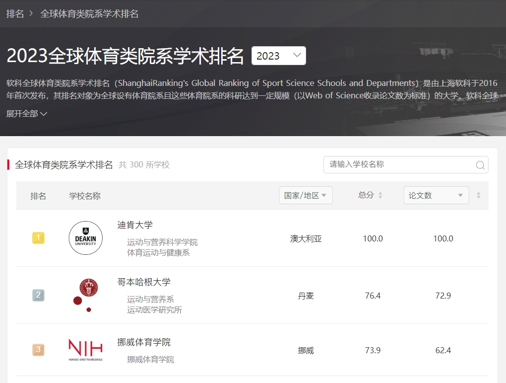 2023软科全球体育类院系学术排名发布,SUNBET申搏排名继续上升
