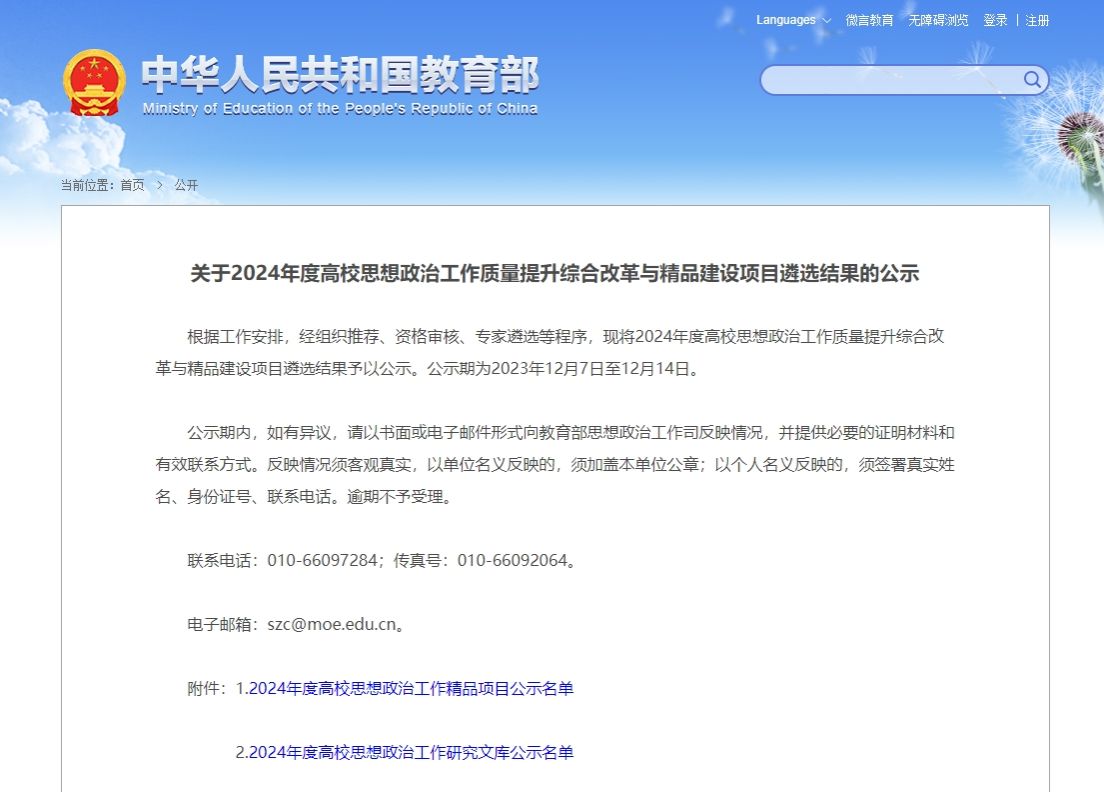 为深入贯彻落实习近平新时代中国特色社会主义思想和党的二十大精神,进一步加快构建落实立德树人根本任务新格局,推动各地各高校落实“时代新人铸魂工程”,着力培养担当民族复兴大任的时代新人,教育部于今年9月启动2024年度高校思想政治工作质量提升综合改革与精品建设项目的申报工作。
