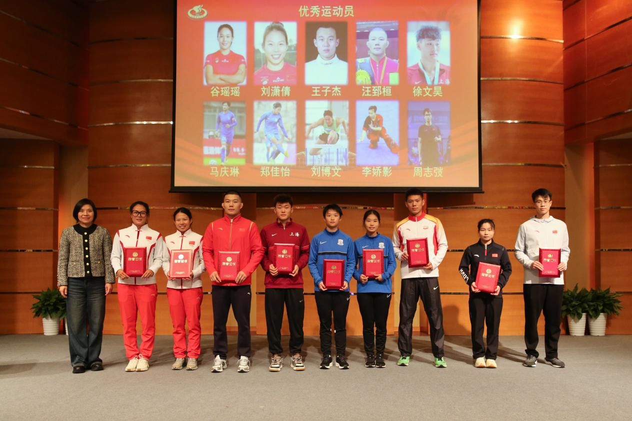 校党委副书记、校长毛丽娟作重要讲话。毛校长指出,这是学校首次举办全校范围的运动竞赛工作总结表彰大会,旨在总结学校2023年度运动竞赛工作,表彰先进组织保障单位、优秀教练员和优秀运动员。2 023 年,学校运动竞赛成绩实现历史性突破,举办赛事水平再创新高,为学校体育事业谱写了新篇章,她希望获奖单位和个人再接再厉,再创辉煌,继续为学校运动竞赛工作贡献力量。毛校长嘱托大家牢记并领悟“走下领奖台,一切从零开始”的名言,继续发扬自强不息、追求卓越的精神,以崭新的姿态迎接2024新的使命和挑战;最后毛校长殷切希望大家牢固树立爱校荣校的主人翁意识,秉持“身心一统,兼蓄竞攀”的校训,践行“发展体育运动、增强人民体质、弘扬体育文化”的光荣使命,立足训练竞赛,继续为国家和上海市体育事业发展贡献力量,为建设中国特色世界一流体育大学增添光彩。